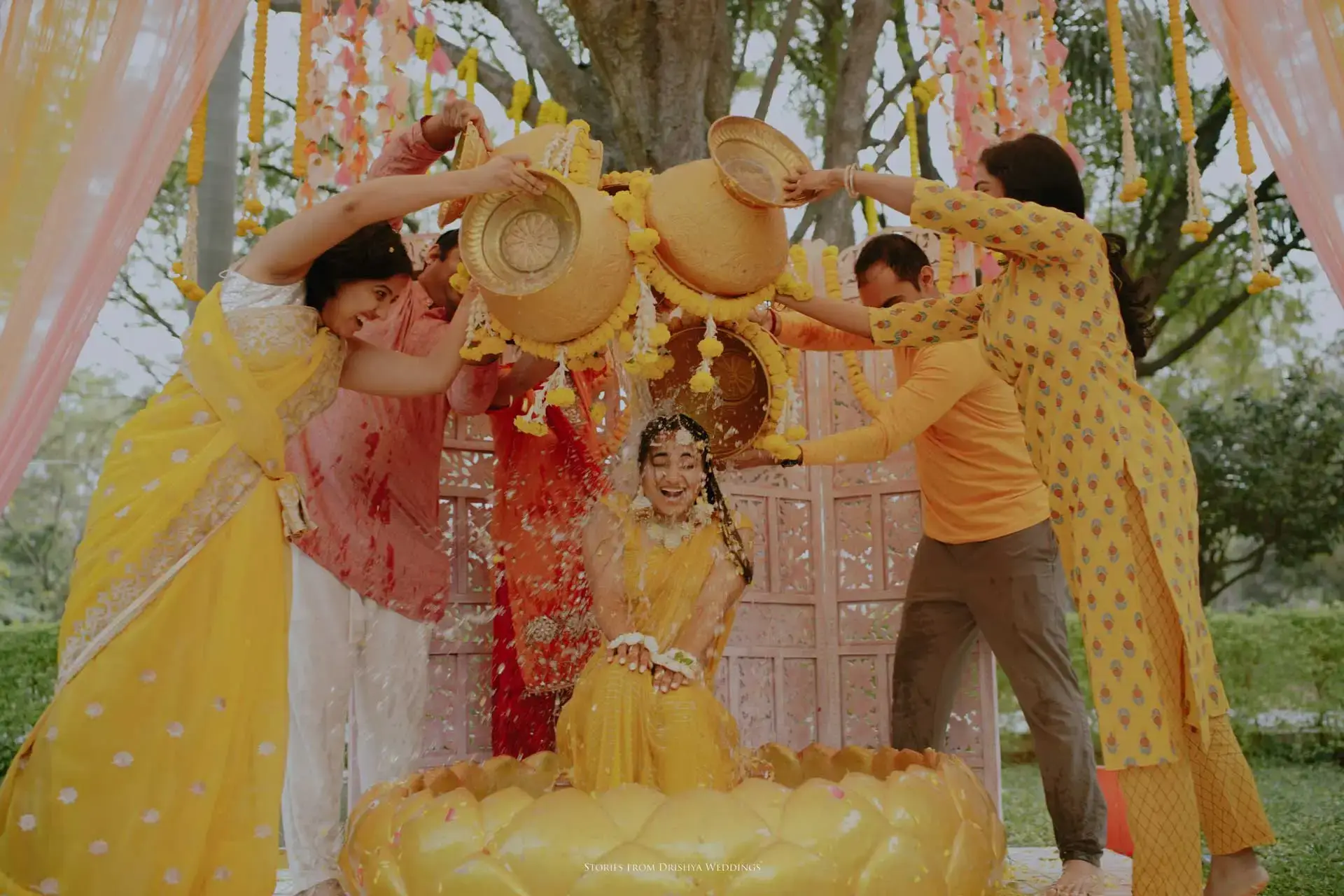 Faces tinted with tamarind yellows, hands smelling of henna greens, flowers blooming in chosen colours, as you walk down the boulevard of your wedding dreams.